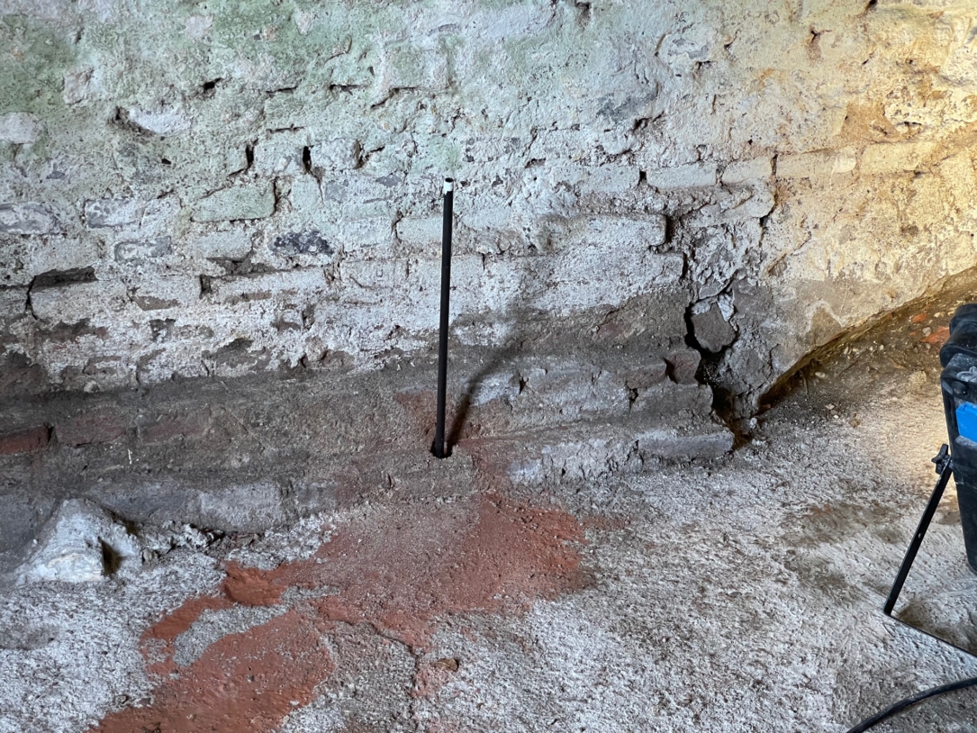 After we’ve injected the resin into the soils and the structure is stabilised the fillpipes are cut off and tidied away.
